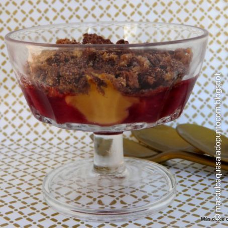 Esta copa consta de tres capas: una primera capa de mermelada, la segunda formada por una crema con mascarpone y dulce de leche y la tercera y última capa de galletas y chocolate negro.