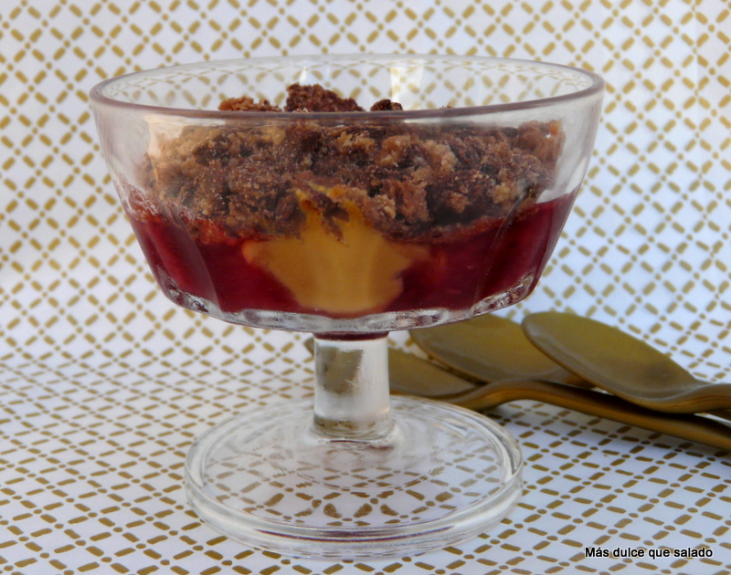 Una vez que los dos ingredientes estén totalmente integrados los colocamos en las copas, sobre la capa de mermelada.