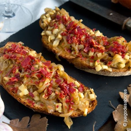 Una deliciosa tosta con boletus y cebolla caramelizada. La combinación de estos ingredientes junto al vinagre de Módena y el Pedro Ximénez hace de esta, una de nuestras tostas favoritas. ¡Pruébala!