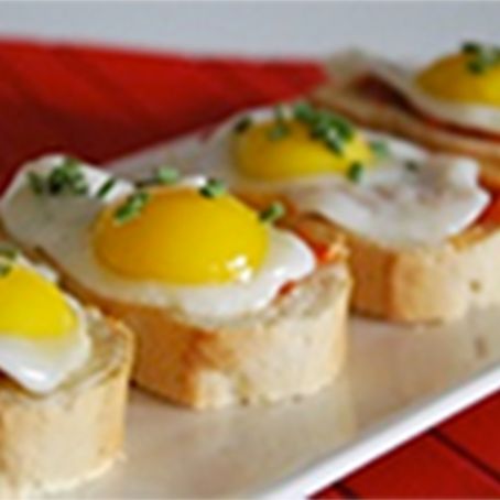 En una sarten con aceite bien caliente, freiremos de uno en uno los huevos de codorniz., los iremos disponiendo sobre la sobrasada que se derretirá un poco con el calor del huevo recién frito.