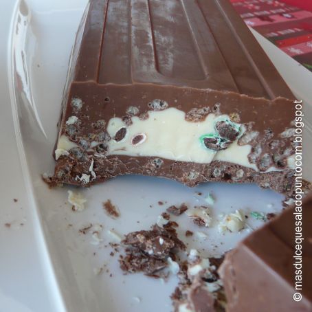 Delicioso turrón con chocolate con leche y chocolate blando, y con sorpresa en su interior