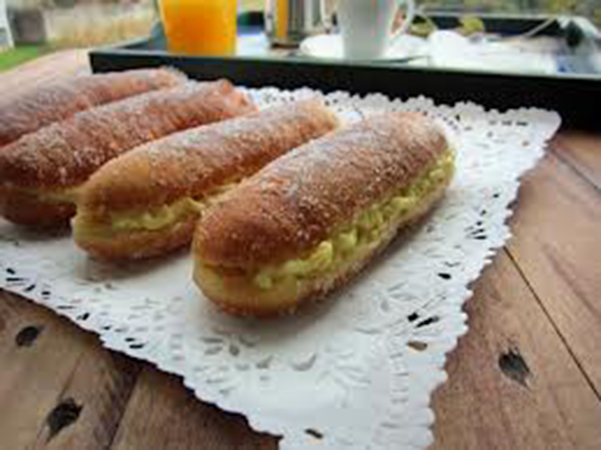 Abrimos por la mitad, rellenamos de crema, y cuando estén todavía templados, rebozamos en azúcar!!