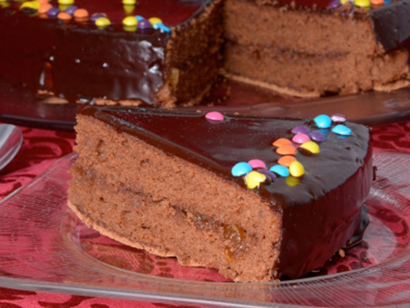 Ponemos el bizcocho sobre una rejilla y una bandeja debajo para que recoja el chocolate que vaya cayendo. Cuando el ganaché haya tomado un poco de consistencia, lo vamos vertiendo despacio sobre la tarta, dejando que se extienda sobre la misma.