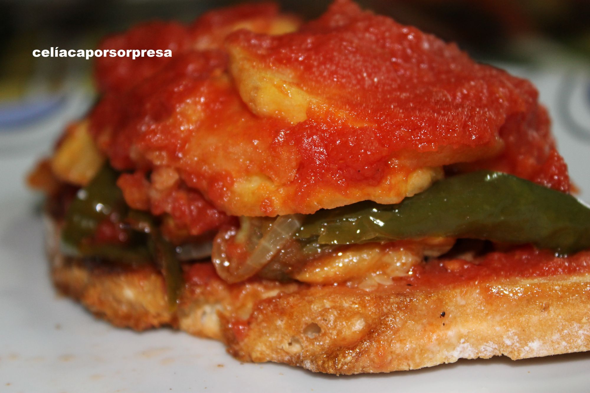 En nuestro caso tostamos las rebanadas de pan en la tostadora (tostadora única y exclusivamente para pan sin gluten) y fuimos montando con cuidado el tumbet que habíamos calentado previamente en el microondas.