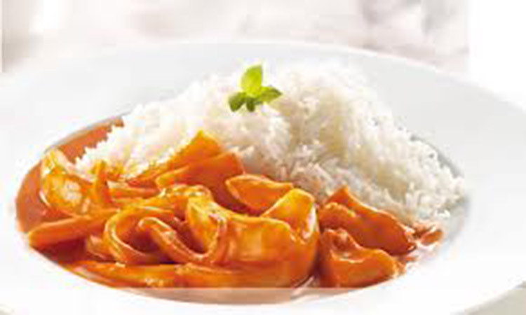 Limpiamos los calamares y los cortamos en anillas, y reservamos.