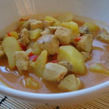 Cocer 5 minutos e incorporar el bonito cortado de la misma medida que las patatas. Cocer otros 5 minutos. Servir.