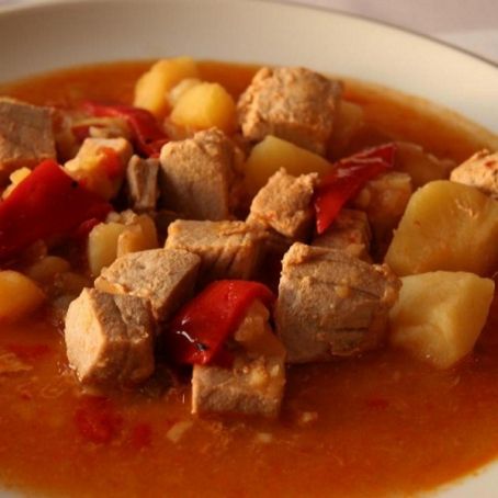 Añadir agua (hasta cubrir con holgura los ingredientes) y dejar cocer. Cuando la patata este casi hecha, añadir los tomates pelados y despepitados y la pulpa de los pimientos choriceros.