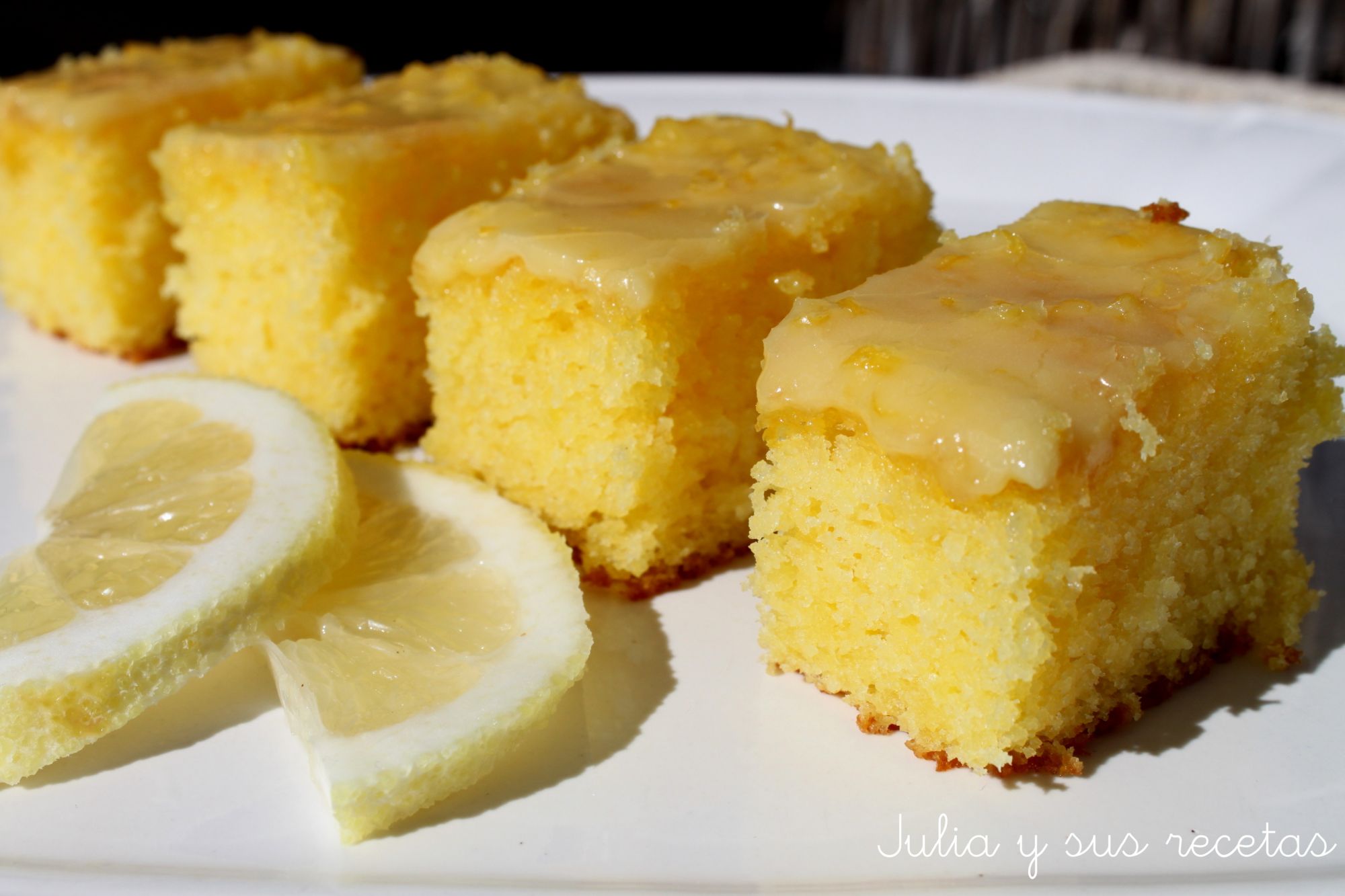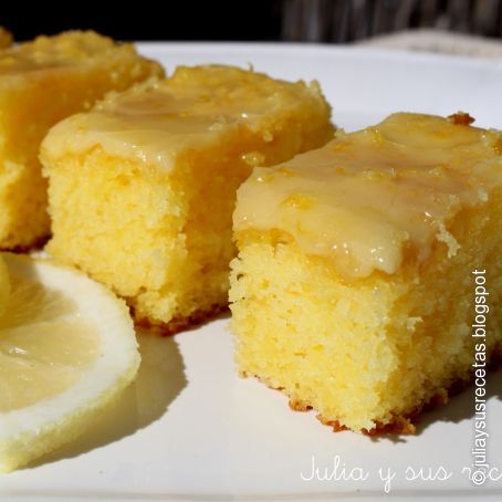 Cuando el bizcocho esté totalmente frío le ponemos encima la glasa y lo dejamos que seque una o dos horas. Desmoldamos y cortamos en cuadritos.