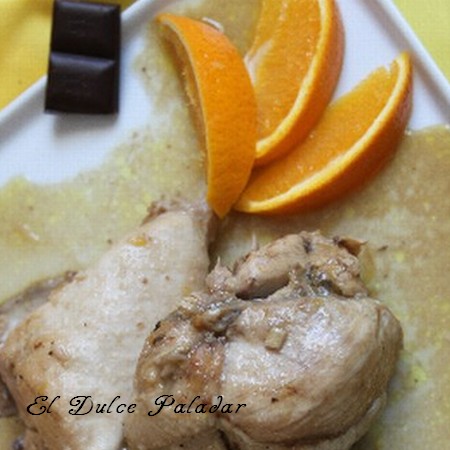 Limpiar de grasas y despedazar el pollo, salpimentarlo y bañarlo con aceite de oliva virgen extra. Colocamos aceite en el fondo de la cubeta, colocamos menú manual o al gusto, 20 minutos, y vamos sellando los trozos de pollo, los vamos reservando en un bol dejando que resuma todo su jugo, cuando estén todos sellados, en el aceite sobrante (si ha quedado, si no agregamos un poco mas), ponemos a pochar la cebolla y el ajo cortaditos a trozos pequeños, cuando esté tierno, vamos agregando los trozos de pollo a la cubeta, agregamos el zumo de las naranjas, el laurel, el whisky, el chocolate negro rayado o cortado muy fino. Cerramos la olla y colocamos menú pollo. Cuando termine el programa, despresurizamos, y si necesitamos reducir, dejamos la tapa abierta en menú manual, 1 minuto,( si ves que el pollo ya está bien tierno puedes sacarlo y reducir la salsa sola).
