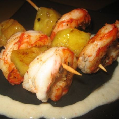 Deliciosas brochetas con una combinación de sabores increíble e ideales para una cena informal, un picoteo... se pueden hacer en plancha o sartén.
