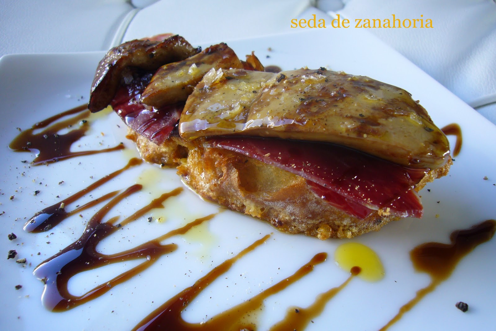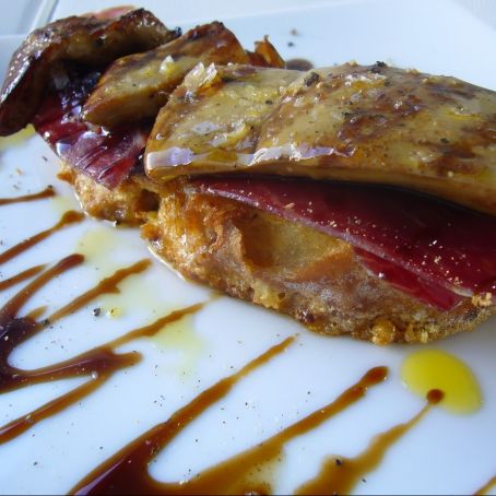 Foiie con Virutas de Jamón Serrano y unas gotas de salsa especial Pedro Ximenez
