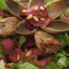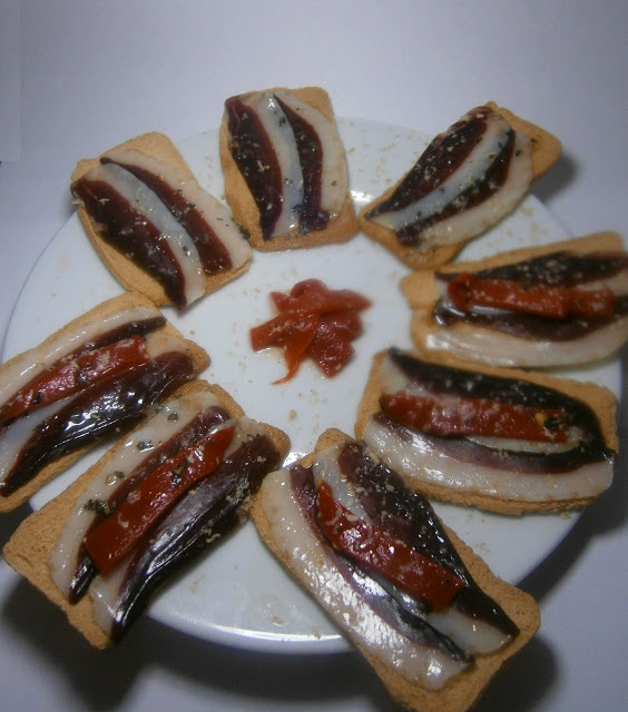 Otra variante es prescindir de las tostadas y colocarlo en forma de ración, colocando las tiritas de los pimientos en el centro.