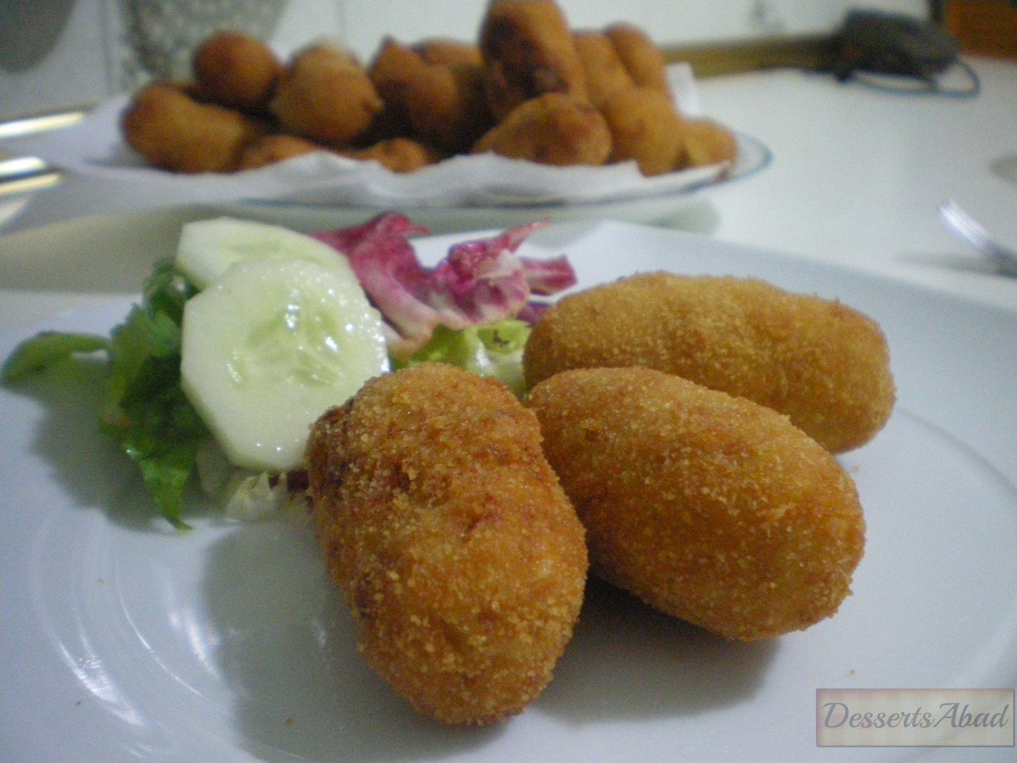 Vamos cogiendo porciones de la masa , les damos la forma característica de las croquetas.Las pasamos primero por huevo batido y acto seguido por el pan rallado.Las metemos en el frigo unos 10 minutos para que asienten y luego estarán listas para freír en abundante aceite de oliva, hasta dejarlas doraditas.Apartarlas a un plato con papel absorbente para retirar el exceso de aceite y queden crujientes.Se pueden comer tanto templadas como frías.