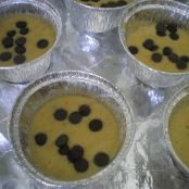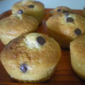 Unta los moldes con mantequilla o aceite y espolvorea con harina, vierte la mezcla.Llena los envases hasta la mitad, ya que la masa sube bastante.Ahora incorporamos las perlitas de chocolate (espolvorear con harina para que no se vayan al fondo).