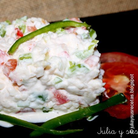 Lavamos y picamos el pimiento, tomate y cebolla en trocitos pequeños. Los añadimos a la pescada.