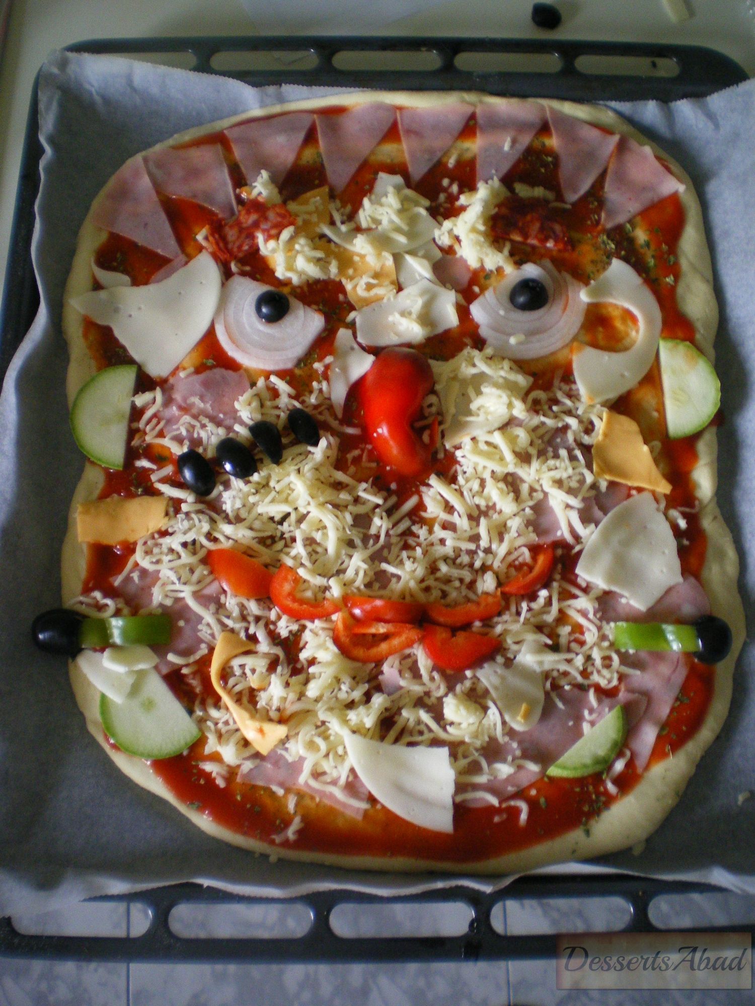 - Precedemos preparando las pizzas como siempre. los ingredientes que más nos gusten.Horneamos y 5 minutos antes de que estén preparadas ponemos las lonchas con la calabaza y el fantasma.Formamos las arañas con las aceitunas negras.Terminamos de hornear y listo.Seguro que a los más peque de la casa les encanta.
