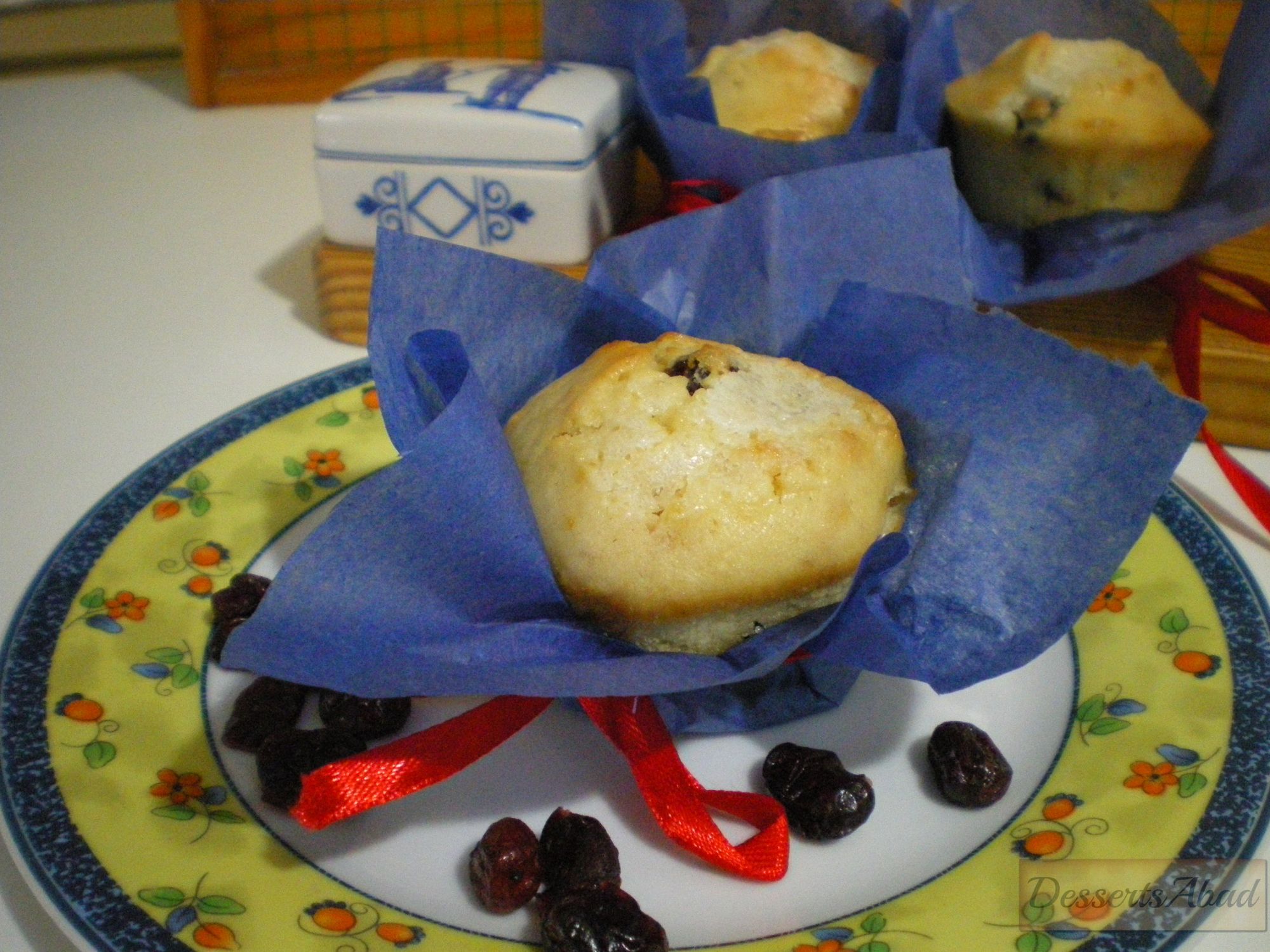 Deliciosos muffins de arándanos y naranjas confitadas para contrastar con la acidez de estos frutos silvestres de origen desconocido y que se da espontáneamente en el norte de Europa, Asia y América.
