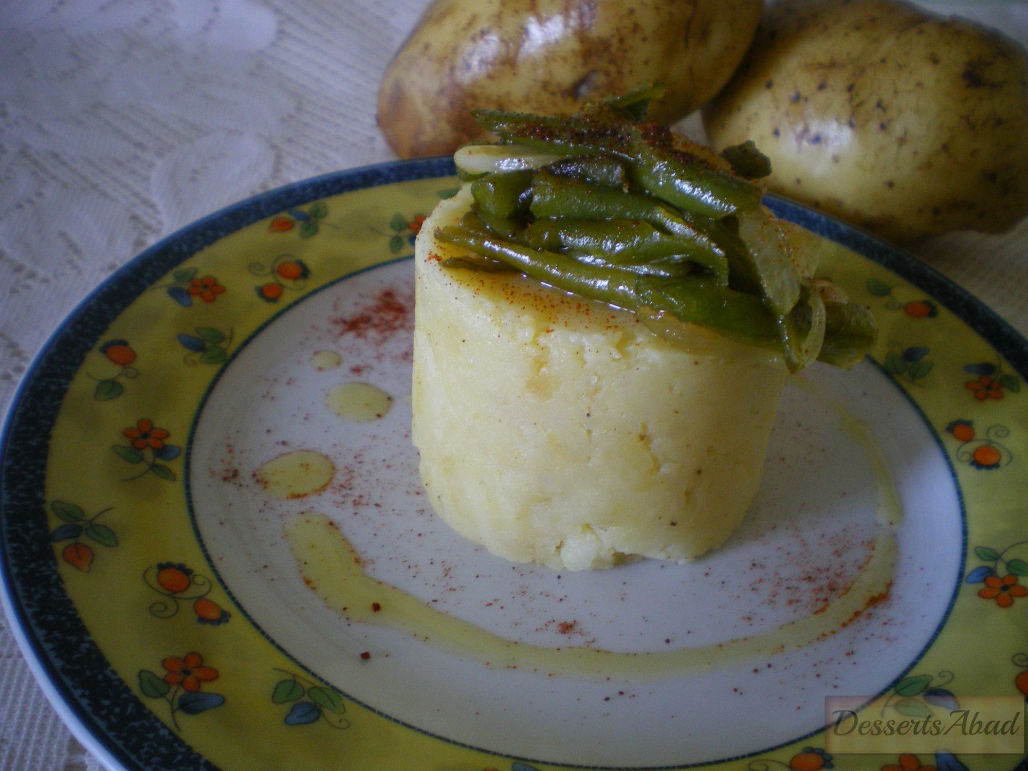 Nidos de puré de patata y judías verdes caramelizadas
