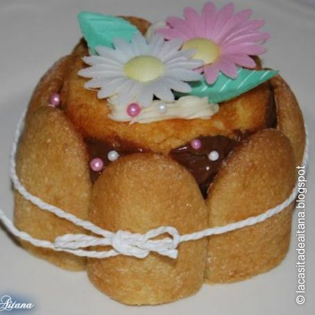 3º ponemos por todo alrededor el bizcocho de soletilla que partimos por la mitad y lo atamos con una cuerdecita ,lazo lo que os guste mas