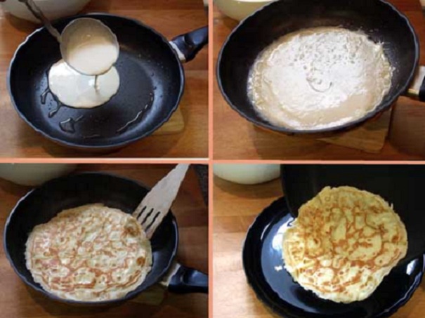 3. Pon a calentar la sartén y, una vez caliente, vierte en ella solo la cantidad necesaria para cubrir el fondo con una película muy fina. En cuanto tome la suficiente consistencia, dale la vuelta y hazlo por el otro lado. Cuando ambos lados tengan este color, sácalo.