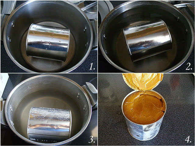 Hay que poner el bote de leche condensada SIN ABRIR tumbado en la olla express, y se cubre con agua, se cierra bien la olla express y se pone al fuego más o menos como 45 min. aprox. (me quedo de color claro, si quereís que os quede un poco más oscuro y un poco más espeso, lo podeís dejar un poco más, pero ojo!!! no mucho tiempo, se os puede pasar, y ya no queda bien).