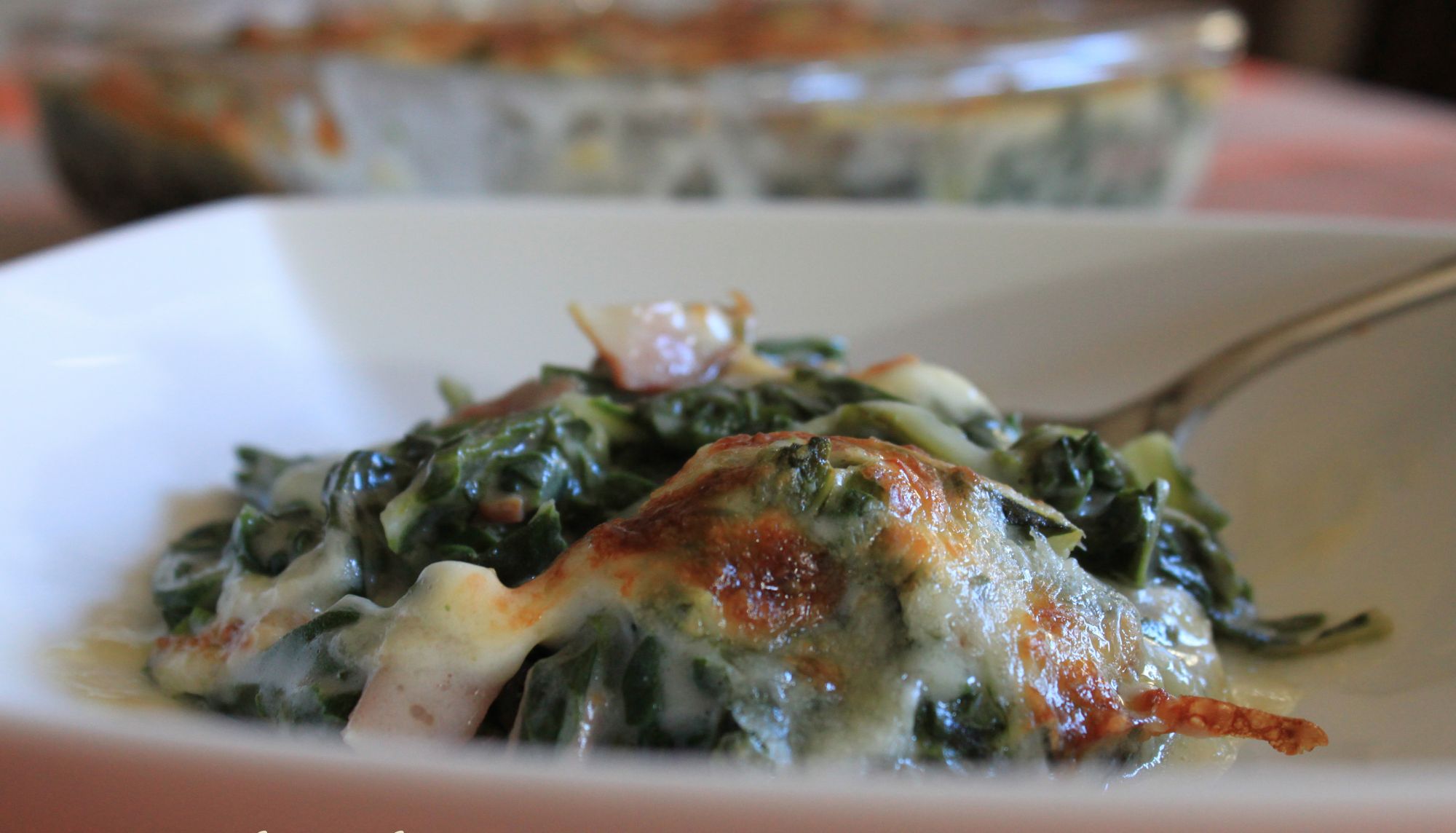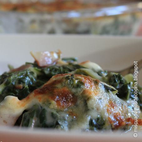 Verter esta bechamel sobre las acelgas y mezclar bien. Espolvorear con queso parmesano al gusto y volver a mezclar. Poner en una fuente para el horno y cubrir con queso de mozzarella rallado.