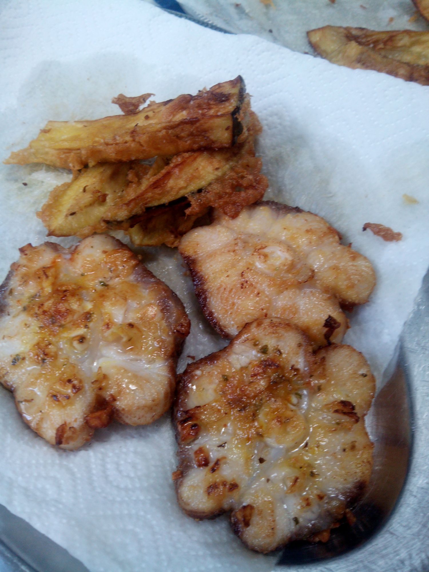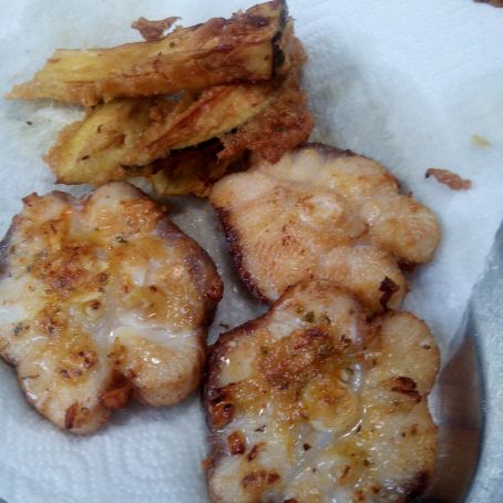poner en una bandeja un papel de cocina y sacar las rodajas fritas doraditas, y ponerlas y servir