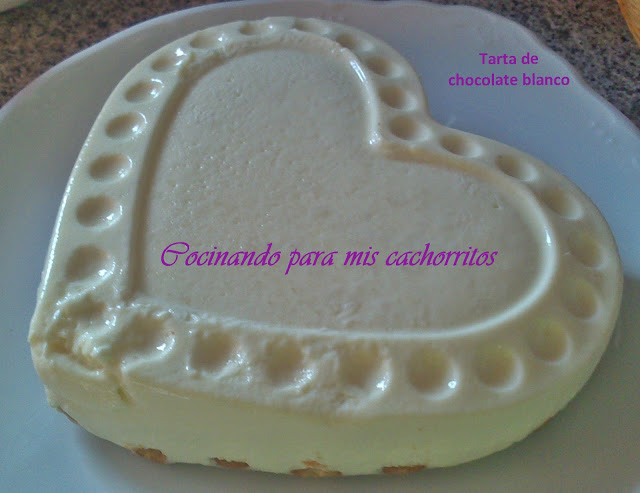 Para servir, desmoldamos con cuidado (como veis en la primera foto, a mí se me chafó un poquito por la esquinita del corazón, una penilla) dando la vuelta a la tarta para que las galletas queden en la parte inferior.