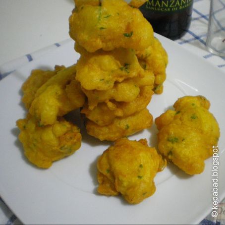 Ponemos el aceite a calentar en una sartén y cuando esté caliente, vamos vertiendo cucharadas de la masa y formando las tortillitas, dándoles la vuelta cuando estén doraditas.Las pasamos a un plato con papel de cocina para eliminar el exceso de aceite y servimos bien caliente.