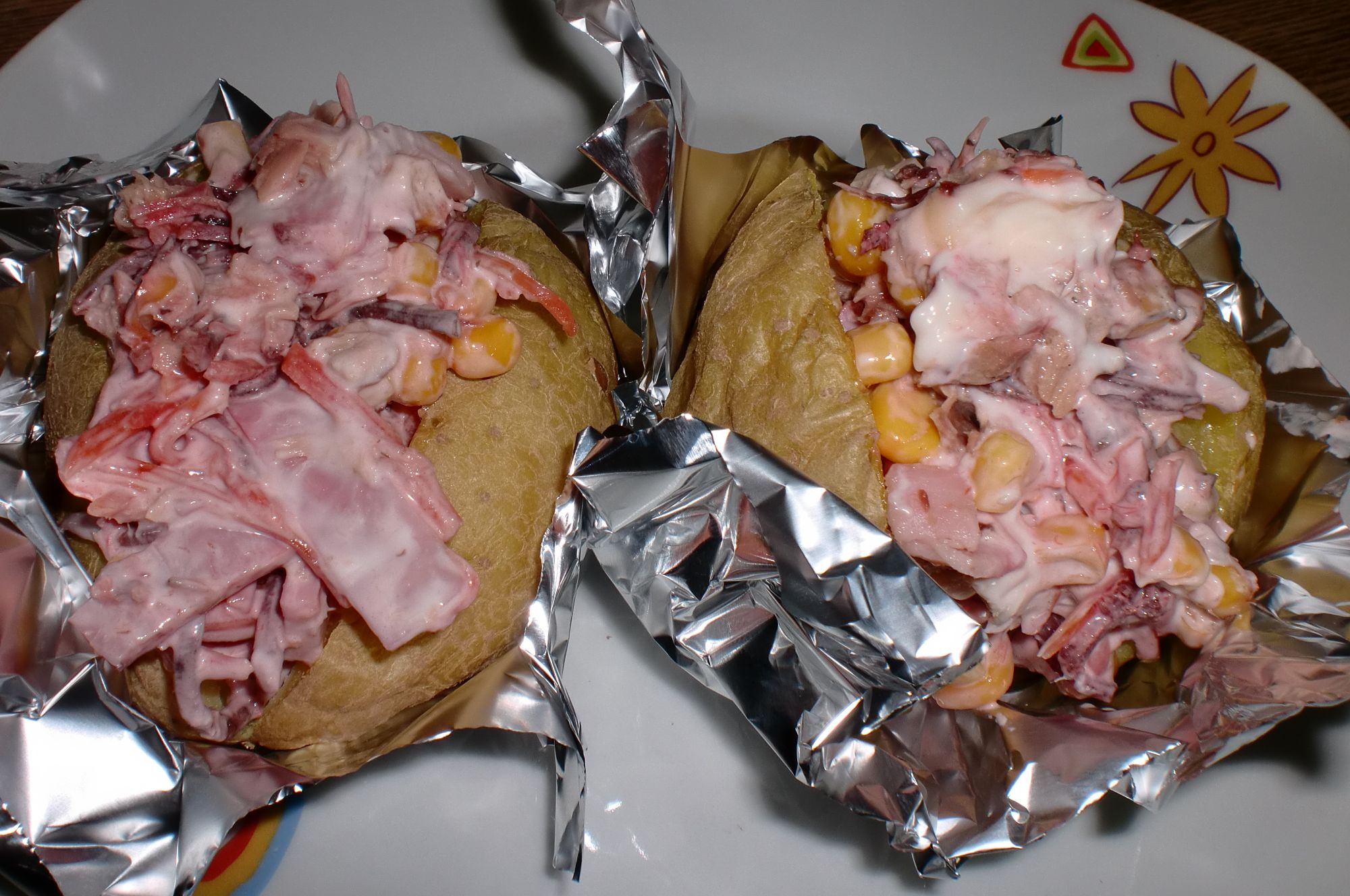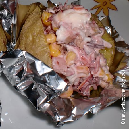 Rellenemos nuestras patatas y servimos en papel de aluminio para que queden mas autenticas.