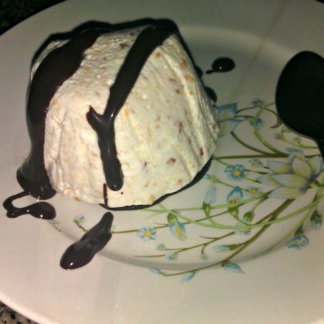 Desmoldar en el centro de cada disco el semifrío y echar chocolate por encima.