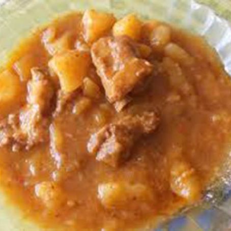 Patatas guisadas con carne en salsa