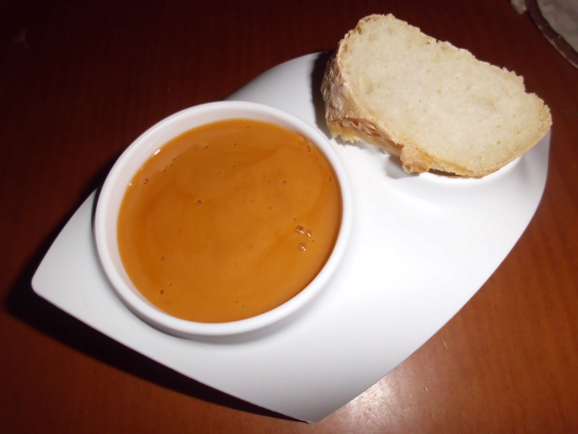 Batir el tomate y los ajos con el pan y el vinagre y montarlo con el aceite con la batidora.