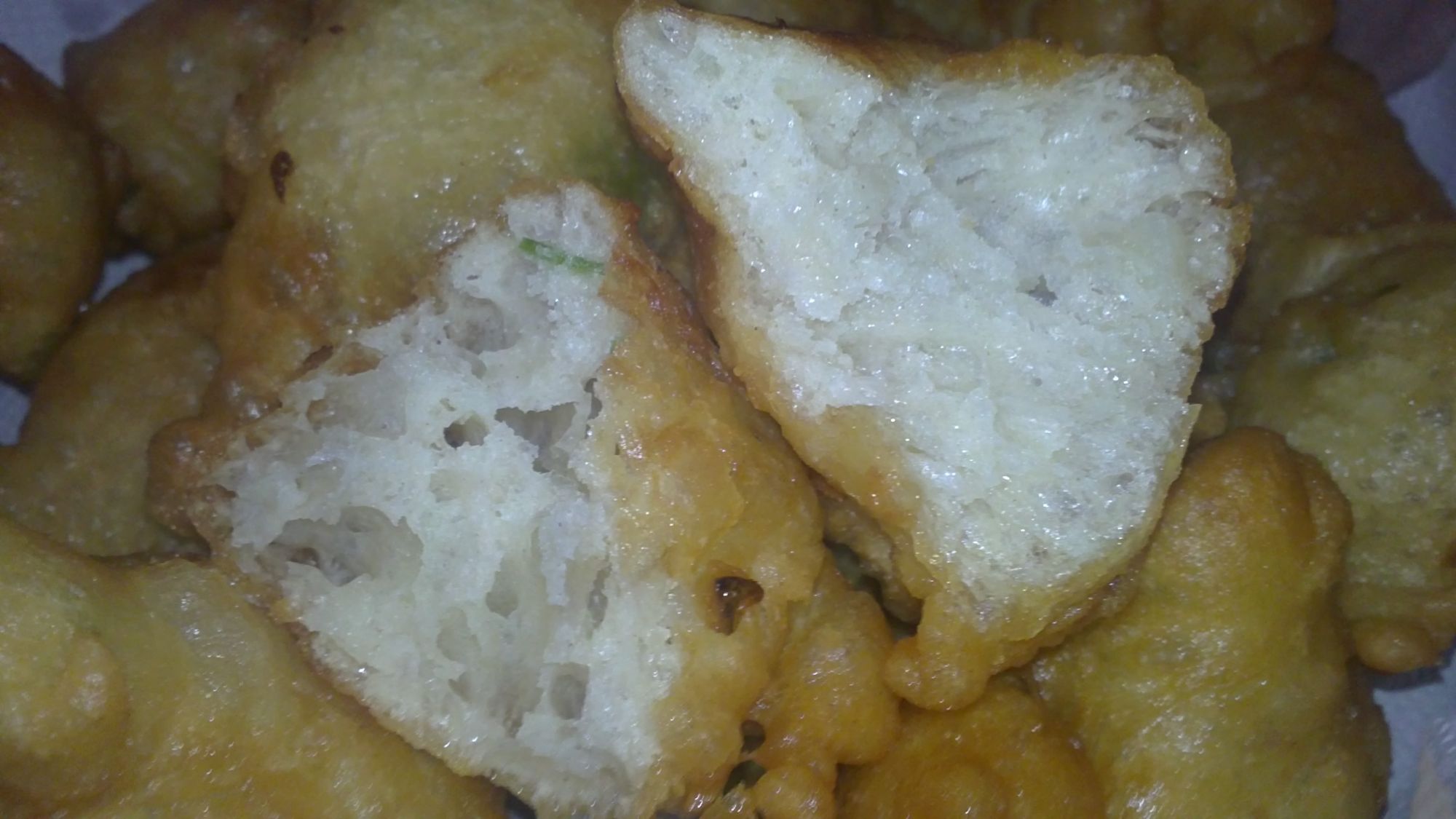 Calienta aceite en una sartén honda, echa bolitas de la masa con dos cucharas.