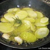 Una vez fritas las patatas, las sacamos. En el mismo aceite freimos los huevos.