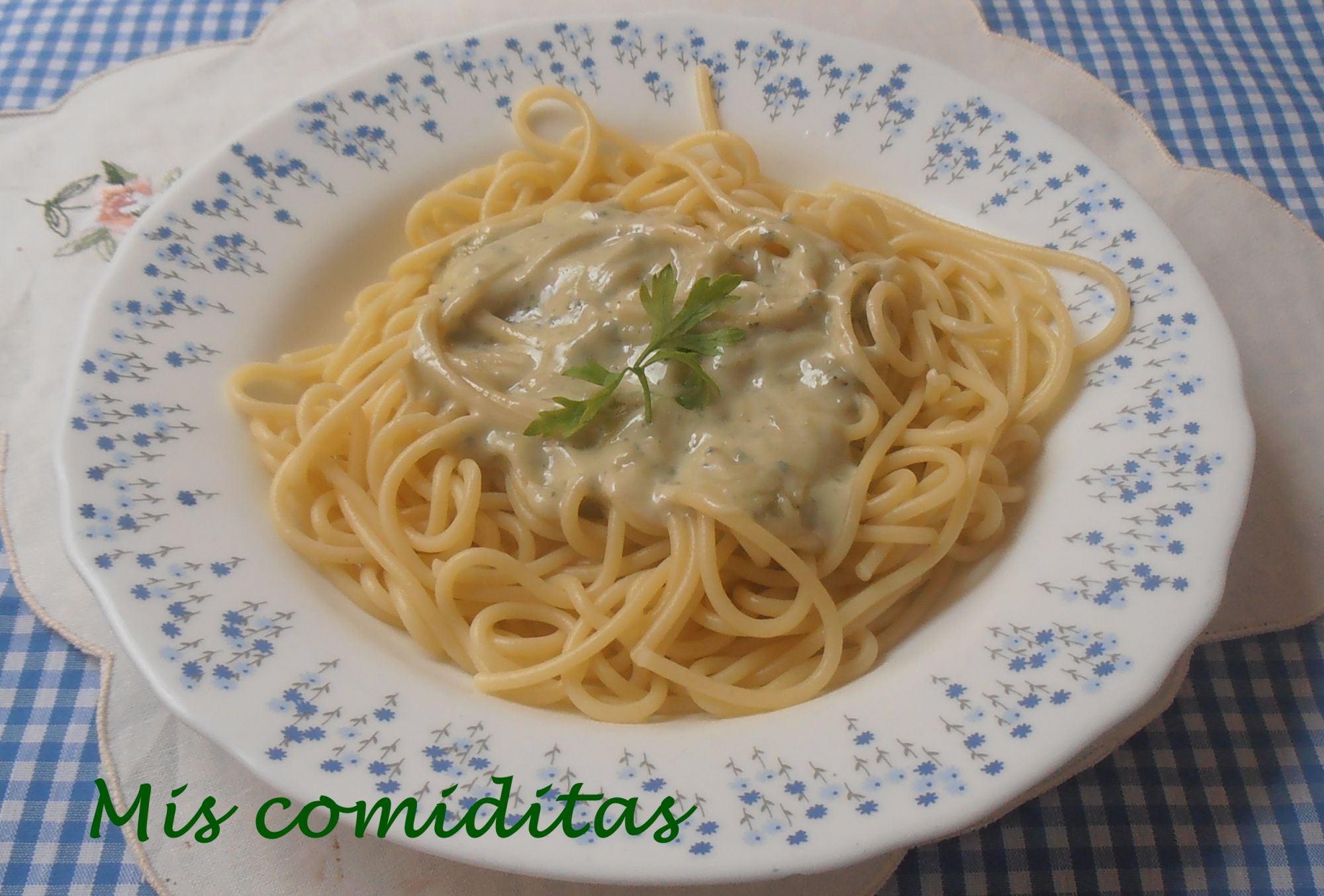 Mientras tanto, calentar la nata en un cazo a fuego suave e ir agregando poco a poco el queso.