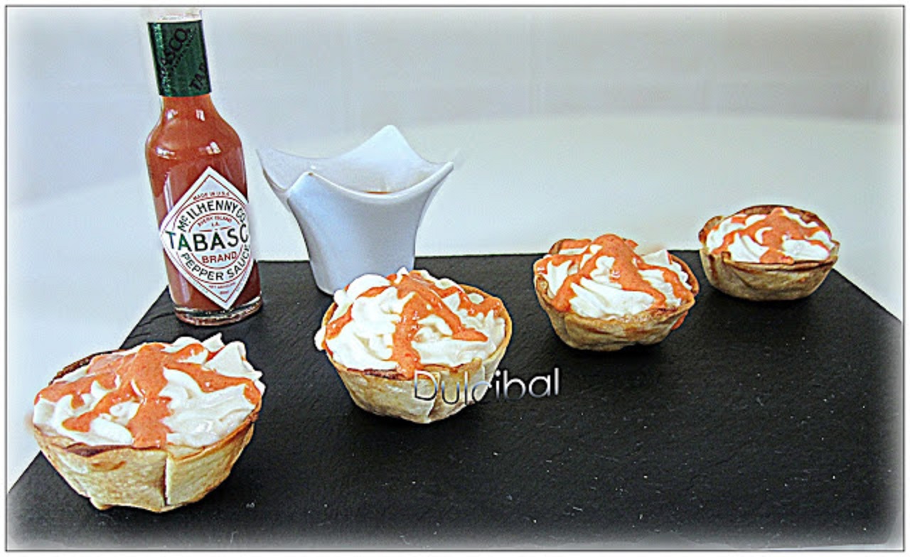 TULIPAS DE BRANDADA DE BACALAO CON CREMA DE PIMIENTOS