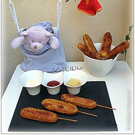 El corn dog es una especie de perrito caliente compuesto de una salchicha recubierta con una masa de pan de maíz que se fríe en aceite caliente. Se suelen servir clavados en palos de madera y se venden en puestos o carritos callejeros y en restaurantes de comida rápida de Estados Unidos.