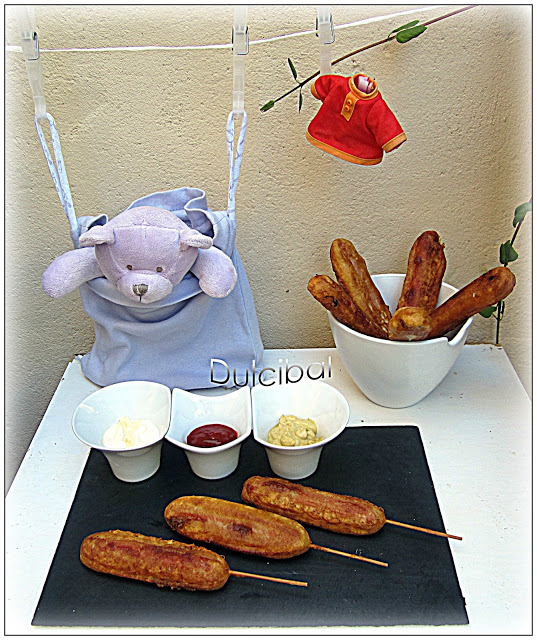 Servir acompañados de las salsas que más nos gusten, en mi caso, mayonesa, ketchup y mostaza.