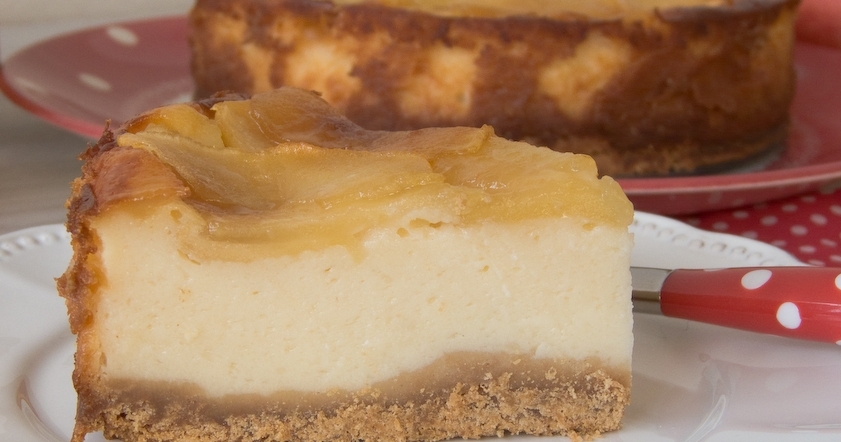 Delicada y exquisista tarta elaborada con yogur y cubierta de manzana almibarada