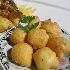 Ponemos a calentar e aceite en una sartén y cuando esté bien caliente, cogemos un poco d masa con dos cucharasy la vertemos en el aceite caliente. Cuando estén dorados los sacamos a un plato con papel absorbente y los servimos calientes.