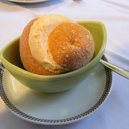 Pon en un bol el zumo de naranja, la gelatina y el jarabe de arce y bate con una varilla. Deja enfriar sobre otro bol más grande con agua y hielos (baño maría). Una vez frío, añade un poco de ralladura de naranja (reserva la naranja) e incorpora la nata líquida ya montada (móntala con una batidora de varillas). Mezcla bien con una leng?1/4eta haciendo suaves movimientos envolventes. Reserva.