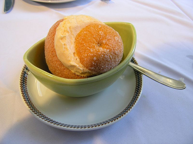 Mancha las copas con la reducción de Modena y agrega la Sousse de naranja por encima. Cubre las copas con plástico transparente y deja enfriar en el frigorífico durante 30-35 minutos. Pasado este tiempo, retira el plástico y sirve con unos gajos de naranja por encima. Decora con un poco de la reducción.