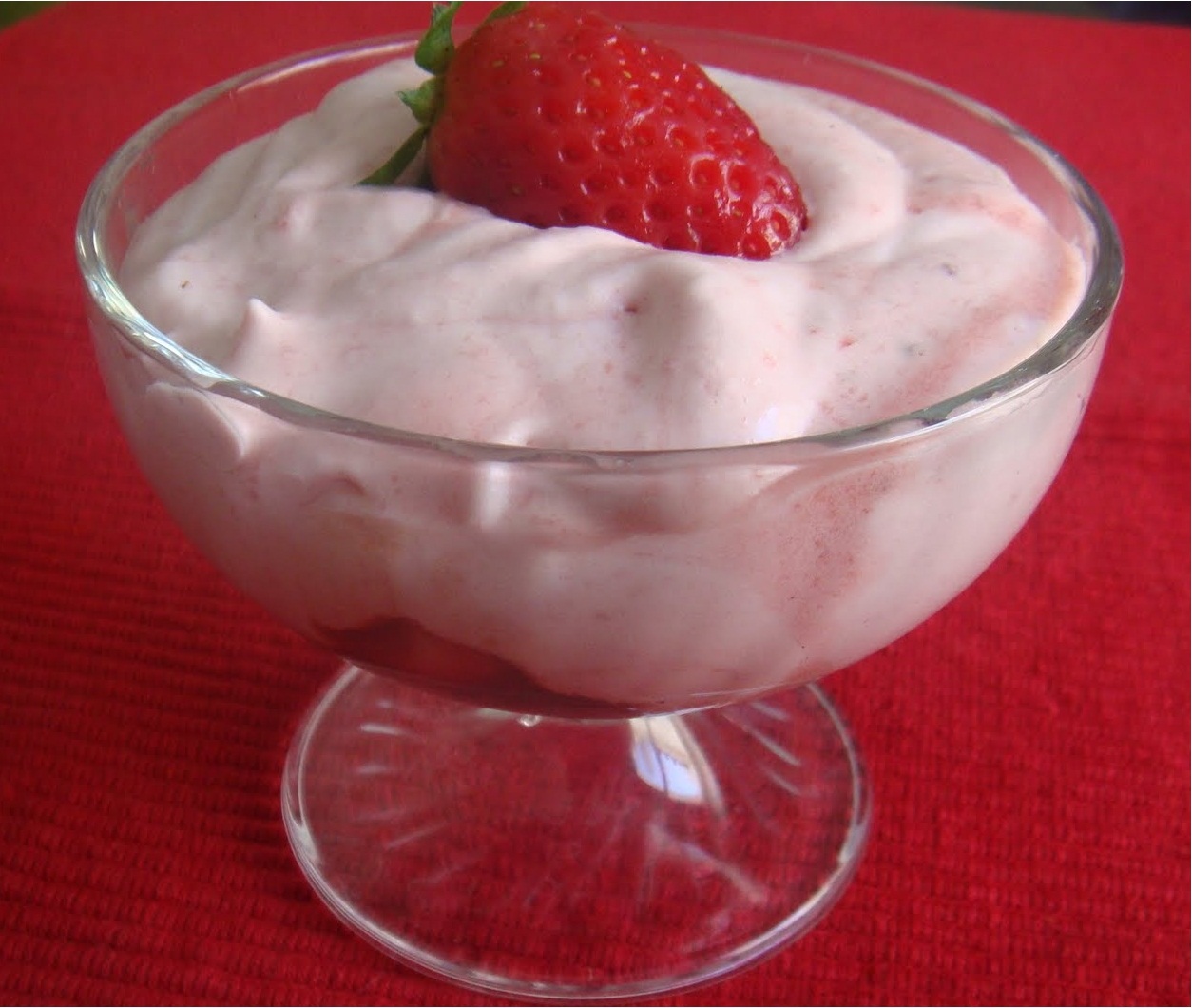 Batimos las claras batidas a punto de nieve, Juntamos la crema de los fresones con las claras a punto de nieve poco a poco, y mezclamos con un cucharón de madera, no con las varillas o la batidora, porque si no se nos bajará la esponjosidad de las claras.