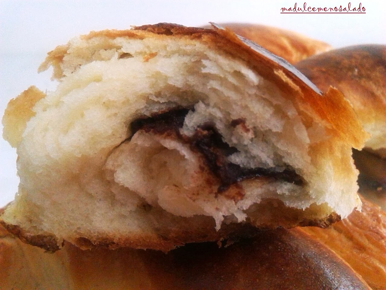 Estiramos la masa con el rodillo, y vamos cortando triángulos ponemos en el centro el chocolate y se enrolla de la parte mas ancha a la mas fina.