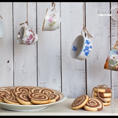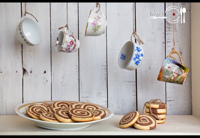 Estas galletas pueden llamarse de varias maneras. Las podemos denominar galletas molinillo, galletas espiral, galletas caracol … por el dibujo que resulta de entremezclar la masa blanca y la masa de chocolate. A mi me gusta llamarlas galletas espiral porque la espiral es una formación perfecta que además podemos encontrar en la Naturaleza aunque muchas veces no la sepamos ver. La concha de un nautilus es un ejemplo de espiral perfecta. El ojo de una borrasca o de un ciclón tropical que se retuerce sobre sí mismo son otros ejemplos. También la imbricación de los pétalos de una rosa o la distribución de los de una margarita. O la perfecta disposición de las hojas de una alcachofa o las pipas de un girasol. En este intento de emular a la Naturaleza nos hemos atrevido a elaborar estas galletas. Pero la Naturaleza es tan perfecta que resulta inimitable. Las galletas, muy ricas, por cierto