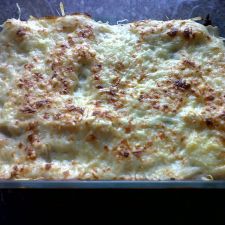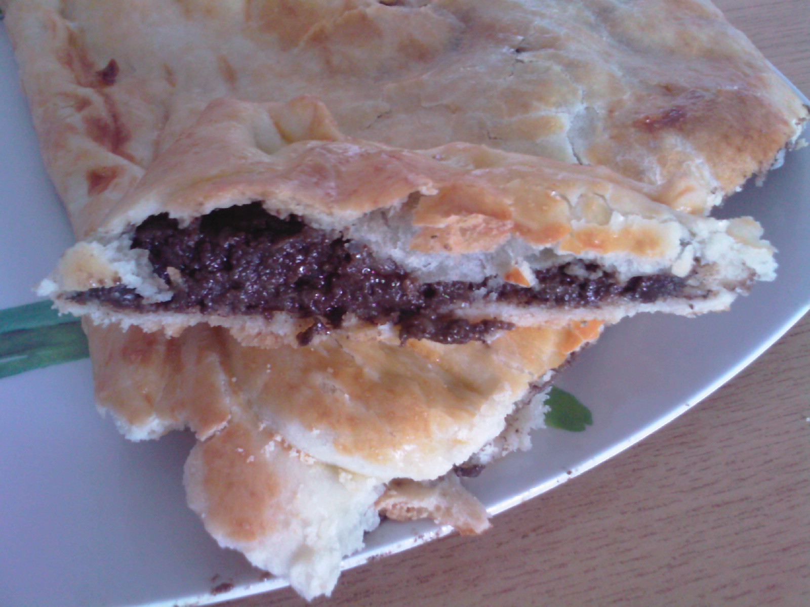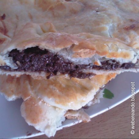 Volcar la mezcla sobre el hojaldre. Dóblalo al medio y cierra los bordes.