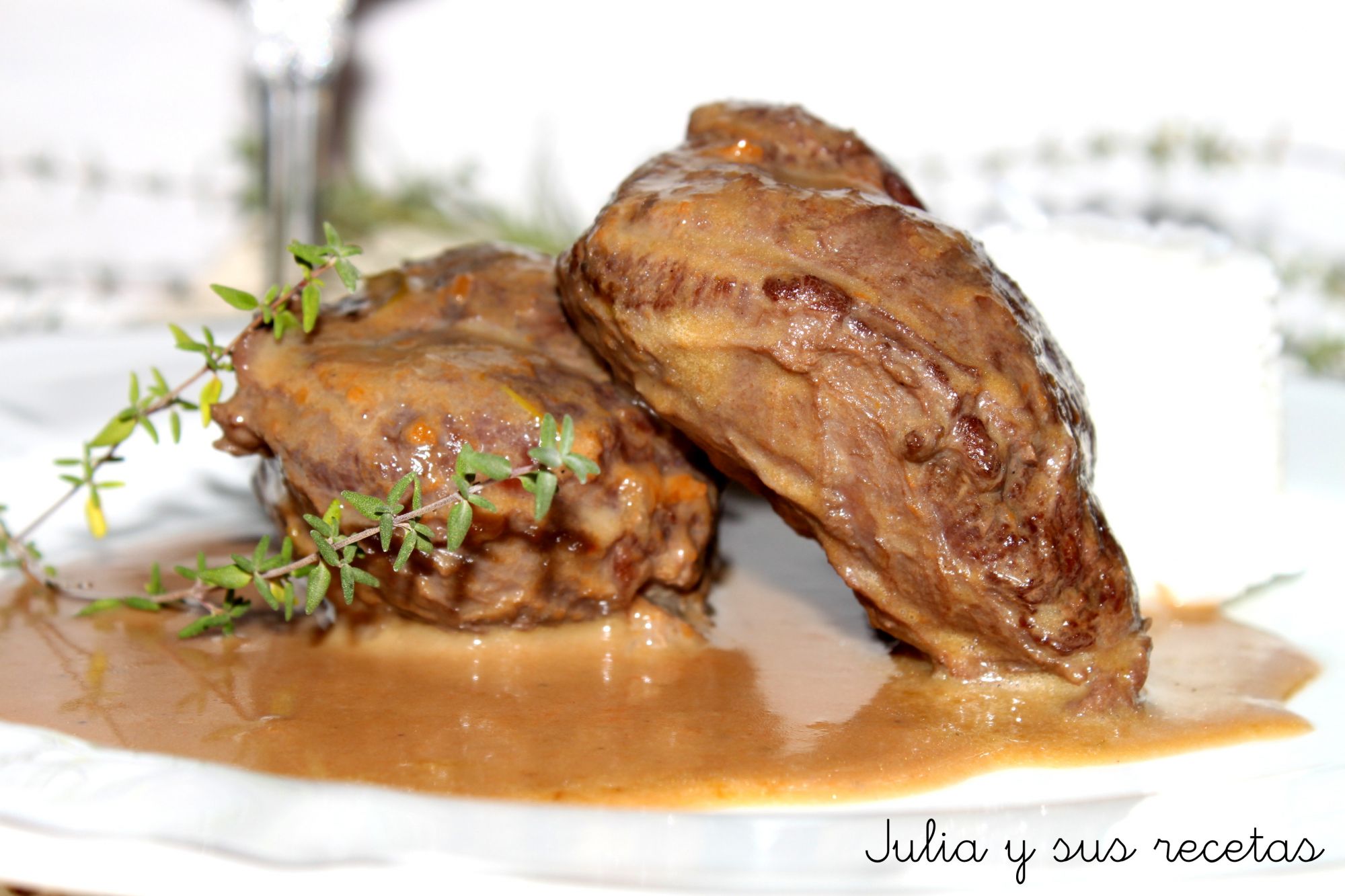 Cuando estén sofritas las añadimos a las carrileras junto con dos hojas de laurel, el romero, el tomillo, el Bovril,