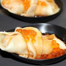 Cubrir con la mahonesa o la salsa rosa. Espolvorear con hierbas para darles aroma y color.