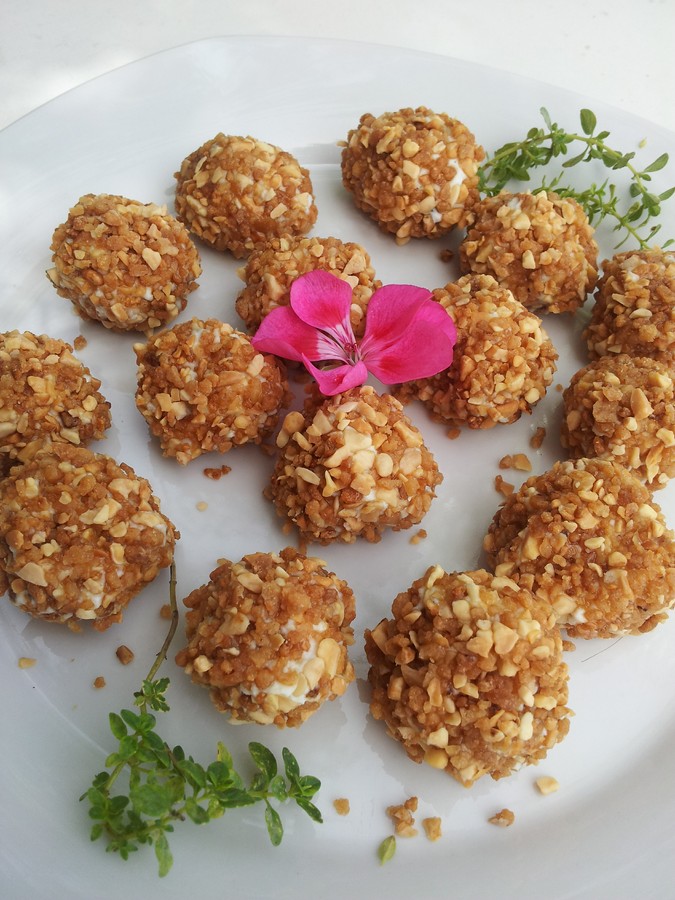 Bolitas de queso Philadelphia y Roquefort con almendras crocanti, "Recetas solidarias para navidad"